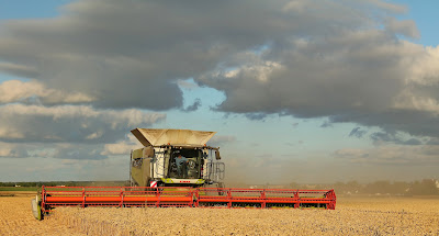 Du lourd hier soir : LEXION 8900 avec une barre de coupe de 13M80.....790 CV quand même !